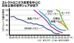 エレクトロ二クス産業を中心に日本企業の世界シェアが低下